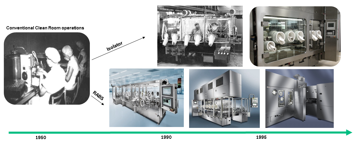 Drug manufacturing in the 1950s-70s was far more prone to microbial contamination problems, and the most prominent source for decontamination was identified as human intervention. As a result, the fill-finish process had to be examined more closely and solutions needed to be found to increase the sterility assurance level (SAL). The first installations of passive open RABS began in the late 70s.