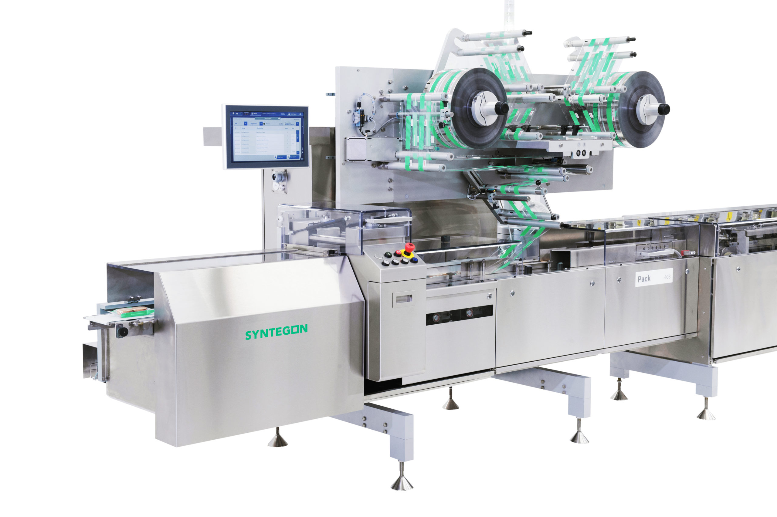 For product handling, infeed and primary packaging, the decision was made to use equipment from the Syntegon site in the Netherlands. The Pack 403 machine is the perfect flow wrapper for medium film speeds. Not only is it compact, it works reliably and at consistently high quality levels, even in 24-hour operation. The clear and simple user prompts, tool-free format changeovers and automation features, such as the automatic film splicer, were all ideally suited to the needs of the customer.